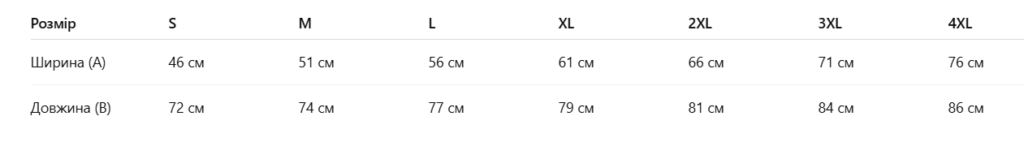 Вартість виробів у розмірах 3XL- 5XL вища