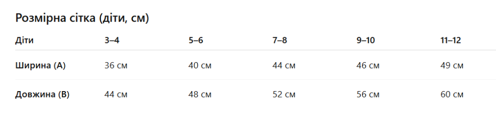 Розмірний ряд Kids: 3/4 · 5/6 · 7/8 · 9/10 · 11/12