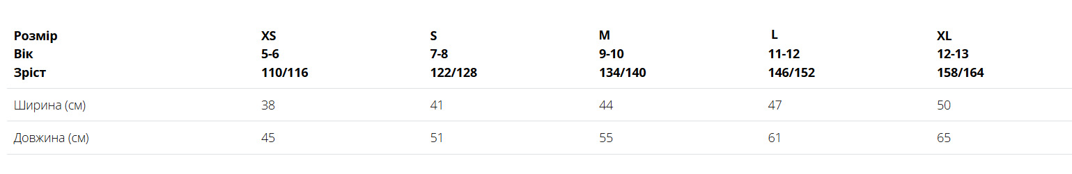 Розмірний ряд: 5-6, 7-8, 9-11, 11-12,, 12-13 років